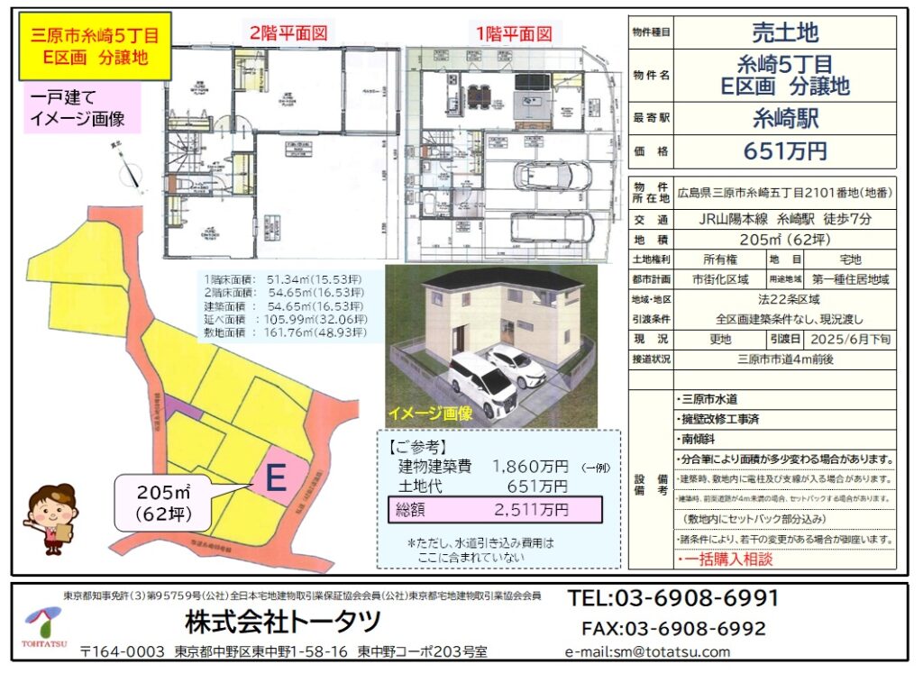 三原市糸崎5丁目 第一期分譲地-E区画 651万円