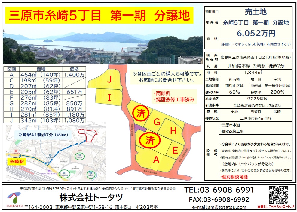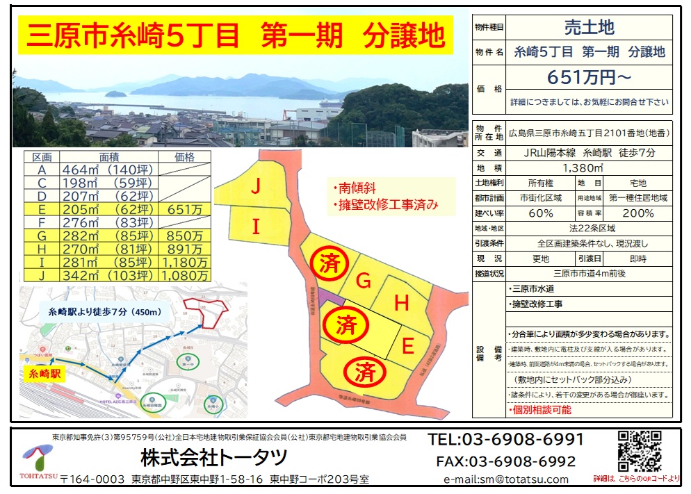 三原市糸崎5丁目 第一期分譲地-E区画 651万円